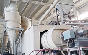 石膏进料处加装生石灰磨细、均匀加料装置,以达到石膏煅烧过程中的性能,保证石膏高品质。