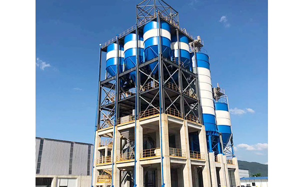 高层钢架式的原理就是普通砂浆生产线的原理方式,其优点为:原料经过气力输送直达大料仓,设备摆布自上而下,料仓-自动配料-混合-成品储存-包装自上而下,生产是自动运行的,生产过程由仪表或电脑进行控制,配料比较准确,有许多中外的大型企业都是使用这种生产线。